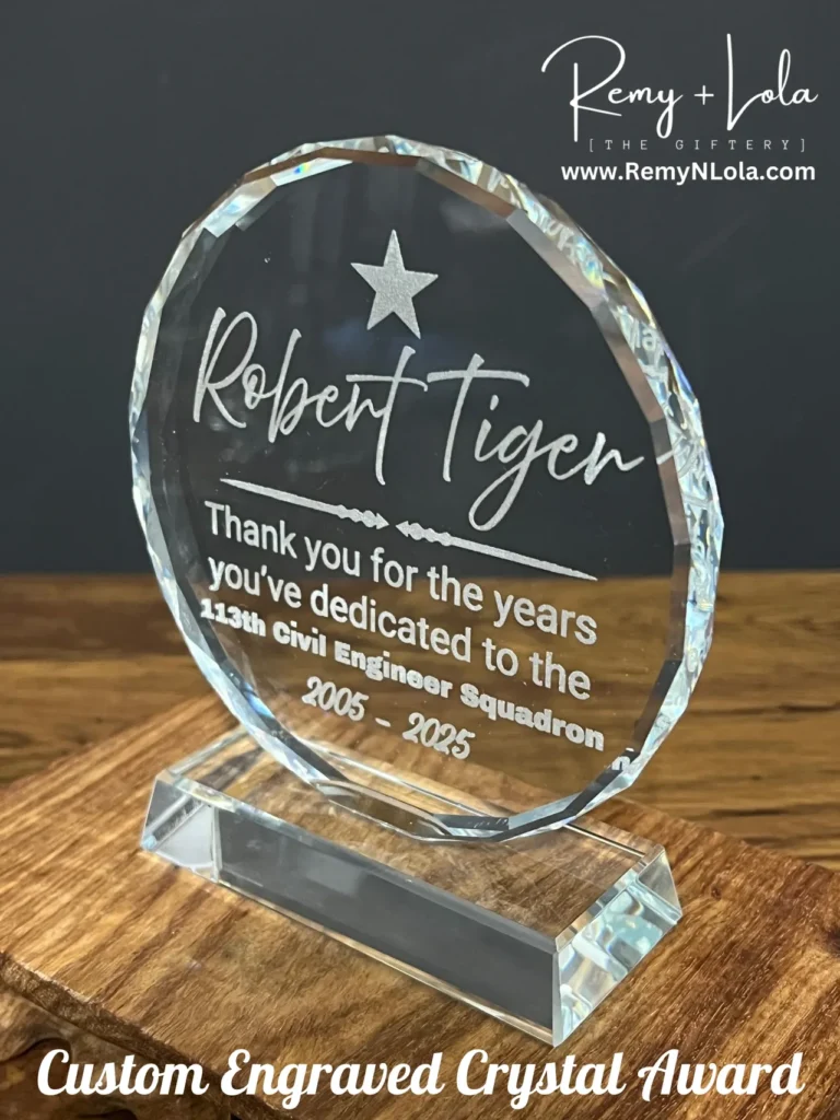 Bring your vision to life with the expertise of Remy & Lola, where we specialize in custom corporate laser engraved signs, custom engraving, and creating unique laser engraved awards and plaques. Whether you’re looking for laser engraved military retirement gifts or St. Mary’s County Maryland souvenirs, we have the perfect solution for you.